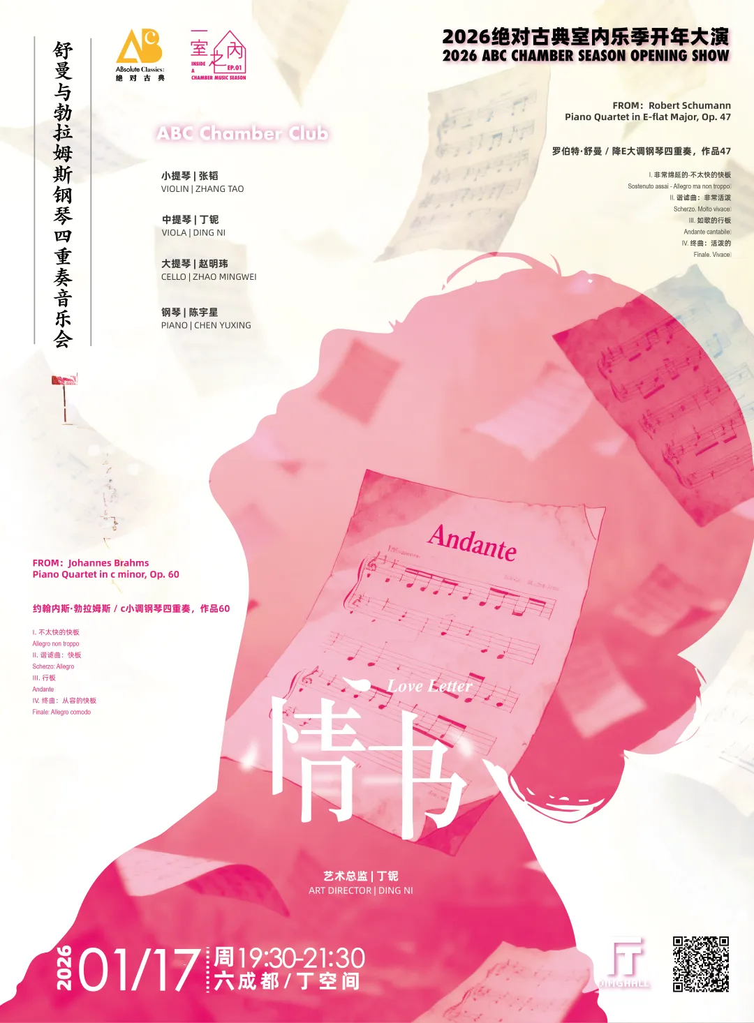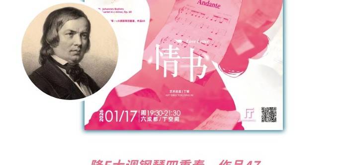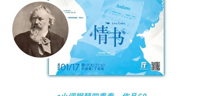2026年1月17日,「鳟鱼」大演上合作马勒钢琴四重奏的四位挚友将以原班阵容回归,于绝对古典室内乐俱乐部的主场、拥有极佳室内乐音响效果的驻厅——丁空间DINGHALL音乐厅,倾情呈献俱乐部2026年的开年大演——「情书」。