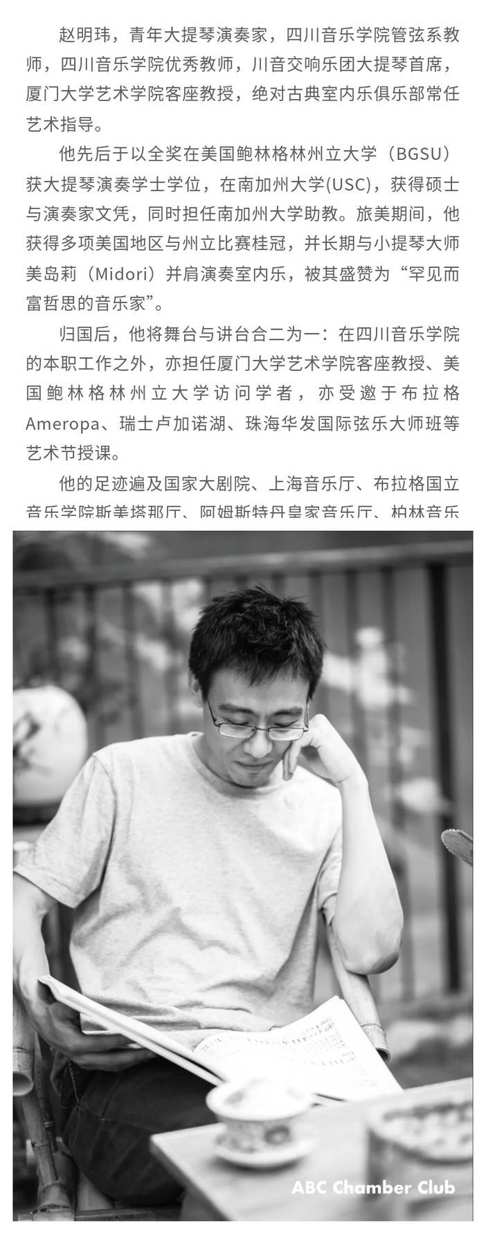 届时,大提琴演奏家、青年学者赵明玮老师也将在曲目开演前和演奏家们一起为听众们进行沉浸式导赏,带领大家更好聆听和欣赏这两部重磅大作!