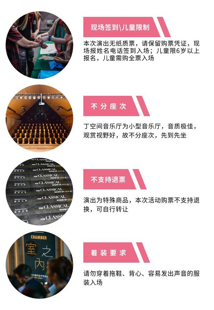 3、由于丁空间DINGHALL音乐厅为小型室内乐音乐会,音效视线均良好,故无需选座,现场直接入座,先来先坐;