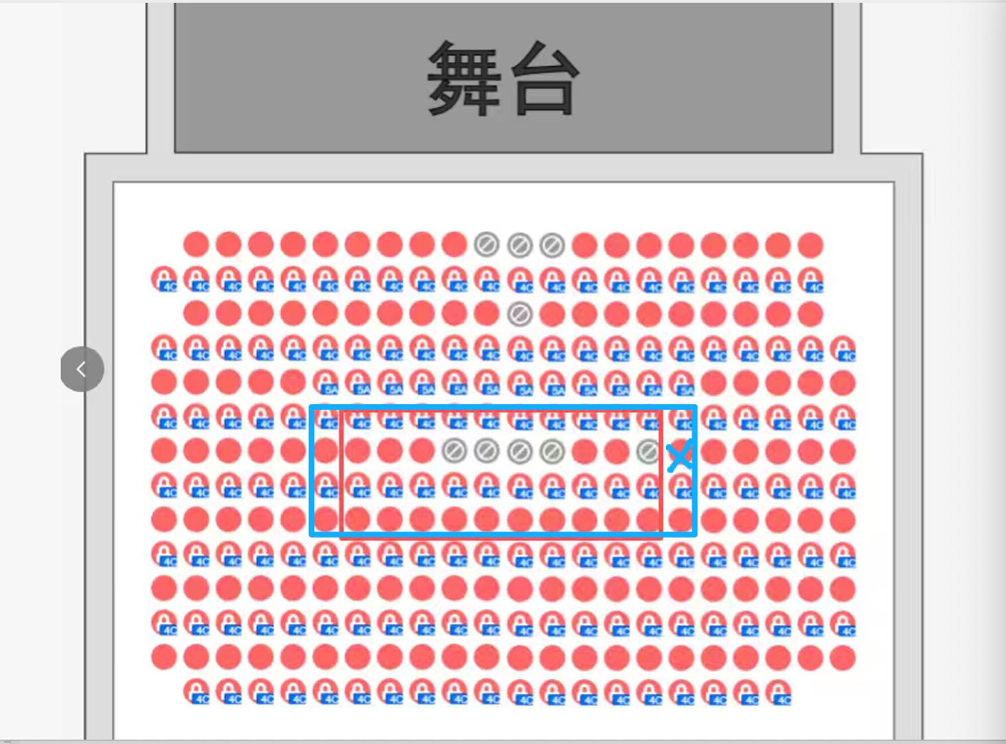1、绝对古典团票位置如图(框内座位):按照购票付款顺序,从左往右,从前往后,依次排列分票